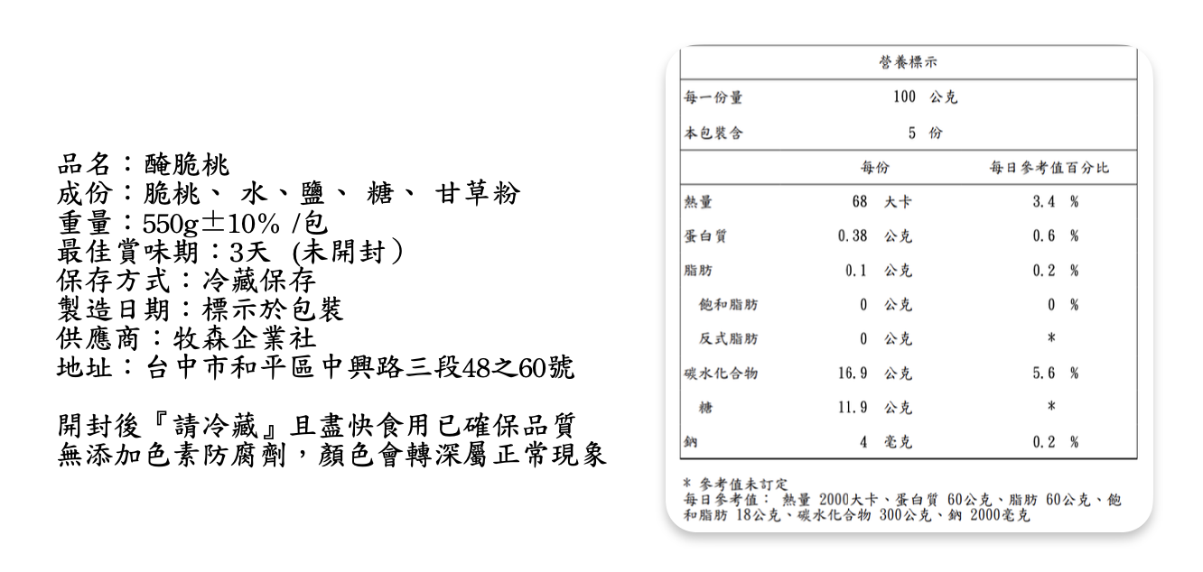 ✨ 口感:酸甜脆口、保留桃子顆顆原味